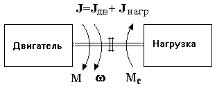 Будем считать, что к системе на рис. 2.1 приложены два момента - электромагнитный момент М, развиваемый двигателем, и момент Мс, создаваемый нагрузкой, а также потерями механической части (трение); каждый момент имеет свою величину и направление. Движение системы определяется вторым законом Ньютона: