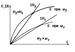 (при данной скорости) и прямой IR = f(I) - рис. 3.11. Очевидно, что чем больше R, тем при большей скорости произойдет самовозбуждение машины.