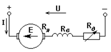 При питании якорной цепи от источника тока (I=const) реостатное регулирование осуществляется включением Rд параллельно якорю - рис. 3.15,а; характеристики при этом существенно изменяются, появляется возможность регулировать как момент, так и скорость.