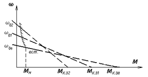 растет с уменьшением потока. Так как ток короткого замыкания не зависит от степени ослабления поля, все электромеханические характеристики пересекаются в одной точке