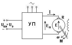 Схема электропривода, обеспечивающая регулирование напряжения на якоре, показана на рис. 3.20,а. Этот способ регулирования предполагает использование силового управляемого преобразователя, установленная мощность которого превышает мощность двигателя. Из уравнений (3.4) и (3.5) следует, что при изменении U (в данном случае Еп) пропорционально изменяется лишь
