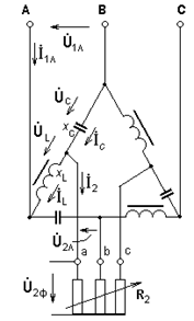 то есть ток I2 не зависит от величины R2, а определяется лишь величинами U1л и хр.э - схема по отношению к нагрузке обладает свойствами источника тока.