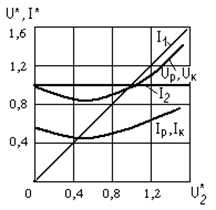 Характеристики источника тока на рис. 3.27,а показаны на рис. 3.28 в относительных единицах; за базовые приняты I2 и U1ф.