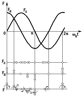 (горизонтальные штриховые стрелки на рис. 4.1,в). Если добавить виток (катушку) В-Y, расположенный под углом 900 к А-Х, и пропускать по нему ток iB = Imcoswt, то МДС FВ будет пульсировать по оси этого витка (вертикальные стрелки):