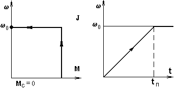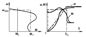 Графики w(t) и M(t) на II этапе показаны на рис. 5.14. Там же слева приведена динамическая механическая характеристка для случая пуска вхолостую.
