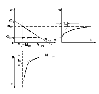 , т.е. как и при пуске, скорость изменяется в том же темпе, что и фактор, вызвавший переходный процесс. При t > 3Тм