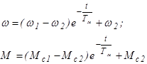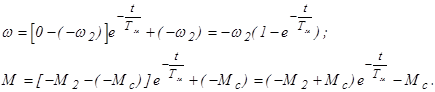 то есть скорость и момент изменяются в переходном процессе от начальных до конечных значений по экспоненциальному закону с постоянной времени Тм (см. рис. 5.4).