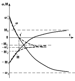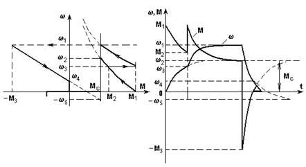 Легко обнаружить связь зависимостей w(t) и М(t) с динамической характеристикой привода: исключив время t из уравнений w(t) и М(t), мы получим динамическую характеристику.
