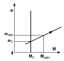 Пусть привод (рис. 5.1) работал в точке w нач, М нач = М с (рис. 5.2) некоторой характеристики (она нас не интересует) и в момент времени t = 0 был мгновенном переведен на новую характеристику, показанную на рис. 5.2,а жирной линией.