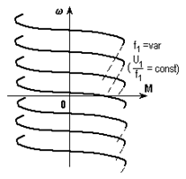 Для осуществления реверса w0 должна изменить направление. Это значит, что еп уменьшается до 0, затем изменяет полярность и возрастает до заданной величины, либо f1 уменьшается до 0, меняется чередование фаз и f1 возрастает до заданной величины.