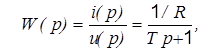 на р, u(t) на u(p) и i(t) на i(p) и решив уравнение относительно i(p), принятом за выходную величину, получим