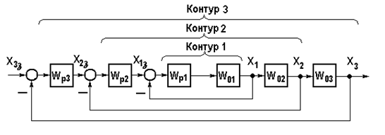 Изложенная процедура оптимизации особенно удобна и эффективна, если в систему входит несколько контуров - рис. 5.27. Начав с внутреннего (контур 1) и оптимизировав его, как было описано выше, переходят к следующему контуру (контур 2) и действуют аналогичным образом.