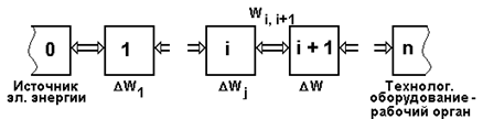 Из (6.7) получаются выражения (6.1) и (6.5), однако обобщенный показатель может дать значительно бóльшую информацию. Например, если выбрать местом оценки сечение 0,1 и учесть потери во всех элементах от 1 до n, то при Р0,1 > 0 получим оценку эффективности потребления энергии на интервале t. Оценка будет работать и при Wn-1,n = 0, т.е. при отсутствии электромеханического преобразования энергии. При оценке в сечении n- 1, n отразит эффективность преобразования энергии, т.е. меру потерь, которыми сопровождается полезная механическая работа, и т.п.
