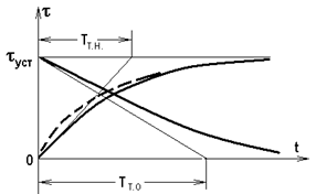 Отметим, что постоянная времени Тт, вообще говоря, - не постоянная: в начальной части нагрева, когда греются лишь активные части, главным образом медь обмоток, и тепло не успевает распространиться по всему телу машины, процесс идет быстрее, чем по (7.3), т.е. Тт¢ < Тт – пунктир на рис. 7.6.