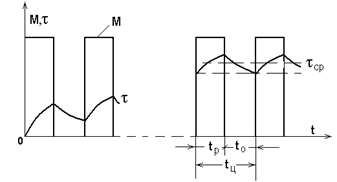 т.е. за время работы перегрев не успевает достичь установившейся величины, а за время паузы tо двигатель охлаждается до температуры окружающей среды (рис. 7.8,б).