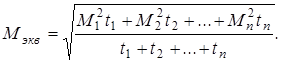 В ряде случаев при проверке двигателя по нагреву удобно пользоваться графиком момента, развиваемого двигателем, в функции времени. Если поток двигателя при этом постоянен, то между моментом и током существует прямая пропорциональность (М = сI). В этих случаях возможна проверка двигателя по эквивалентному моменту, который для ступенчатого графика вычисляется по формуле
