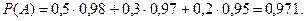 Р(А) = Р(В1).РВ1(А) + Р(В2).РВ2(А)+ Р(В3).РВ3(А) =