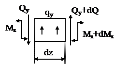 - Мх + qy×dz×dz/2 + Мх + dМх - Qy×dz = 0,