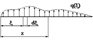 Рассмотрим подробнее частное решение. Пусть стержень нагружен произвольной распределенной нагрузкой (рис.48). Определим величину поперечной силы и изгибающего момента для точки с координатой z.