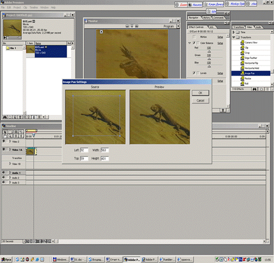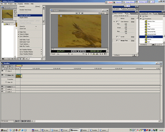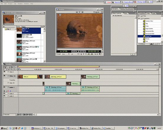 Для данного монтажа мы не будем использовать сложные переходы, так как этого не требует техническое задание, а так же в связи с тем, что видеоролик будет использоваться в учебном электронном пособии и сложные технические приёмы монтажа могут отвлекать пользователя от развития учебного сюжета.