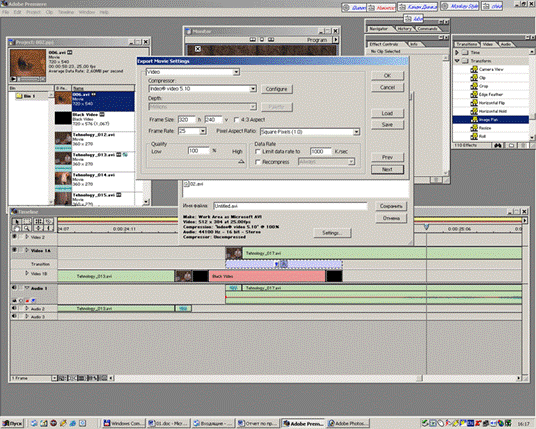 Теперь остался завершающий этап, это преобразование материала с рабочего поля в файл *. Avi c компрессией кодеком, требуемым техническим заданием, в данном случае Indeo Video 5.10 c разрешением 320х240.