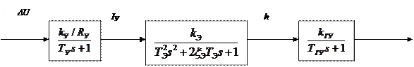 Применяя к приведённой системе уравнений преобразование Лапласа при нулевых начальных условиях, получим систему уравнений привода в операторной форме, на основании которой ниже построена структурная схема: