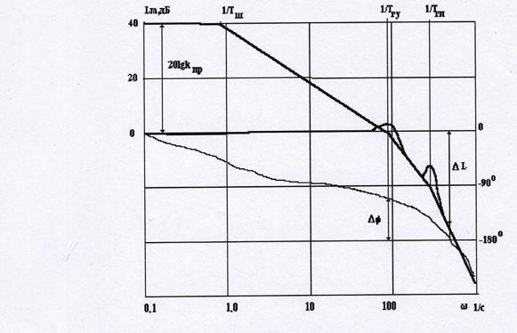 Выше представлены результаты исследования гидравлического привода. В частности было показано, что внутренний контур можно заменить апериодическим и колебательным звеньями. Указывалось, что постоянные времени усилителя и ЭМП малы и ими можно пренебречь ТУ=0 и ТЭ=0. С учётом принятых допущений передаточная функция разомкнутого ЭГП может быть представлена в следующем виде
