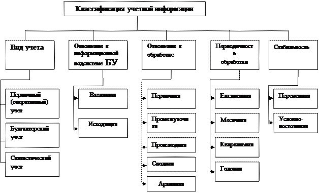Учетная информация - часть экономической информации, предназначенная для реализации учетных функций; характеризует уже совершившиеся события, явления и хозяйственные процессы. Возникает в ходе наблюдения, измерения и систематической регистрации всех ресурсов и хозяйственных операций в документах. Служит для получения всех результатов деятельности организации и их оценки. Объекты учета отражаются в учетных документах с помощью количественных и стоимостных показателей.