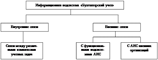 · внутренние связи отражают информационные связи между комплексами учетных задач и их интеграцию; внешние – с другими функциональными подсистемами и другими организациями.