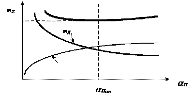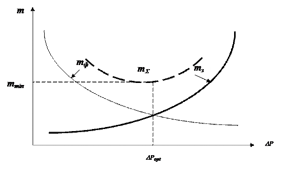 Если на графике рис. 45 зависимости массы фильтра и массы заряда от перепада давления изобразить две кривые, то суммарная масса mз и mф при выборе рабочей поверхности фильтра, соответствующей среднему значению перепада давления DРopt, будет минимальна, что позволяет минимизировать массу ТТГГ в целом.