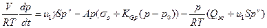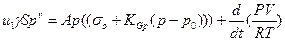 – коэффициент чувствительности скорости горения к окружающей температуре, p – давление газа, n - показатель степени в законе горения топлива, g - удельный вес топлива, S - площадь горения, А – коэффициент истечения газа через сопло,
