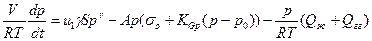 Для исследования динамических характеристик газогидравлического источника питания необходимо составить его математическую модель. В качестве исходного запишемуравнение неразрывности расхода: