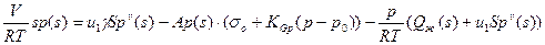 - минимальная площадь проходного сечения клапана, R - удельная газовая постоянная, Т - температура газа, KG - коэффициент пропорциональности по давлению для клапана, V- объем газа в газогидравлическом источнике питания.