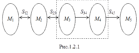 На основании вышеизложенного и основываясь на иерархическом подходе можно представить обобщенную структуру ИУС, как техническая система как систему, в виде множеств двух видов - Мi – множество субъектов системы; Sij – множество связей между субъектами системы, характеризующие отношение между ними и прохождение информации (описание типа и протокола передачи информации). Подобный подход справедлив для любой технической системы, к которым относится и ИУС, и возможен для других систем. На рис.1.2.1 представлена структура ТС как система множеств, где приняты следующие обозначения: М 1- множество исследуемых объектов;