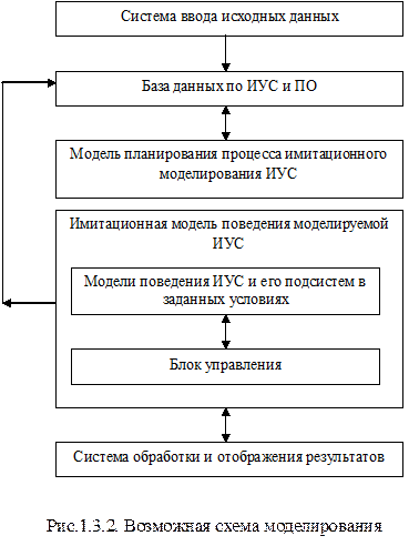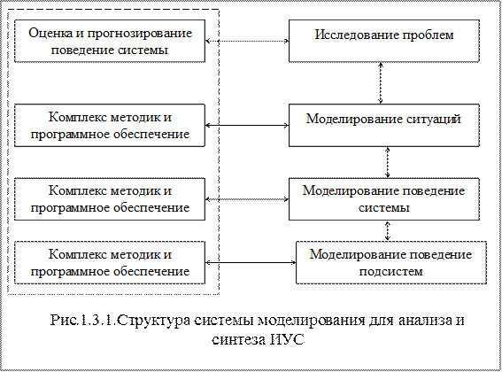 На рис.1.3.1 представлена структура системы моделирования для анализа и синтеза ИУС. Из этой структуры видно, что от того, на каком уровне будут подготовлено методологическое и программное обеспечение, то такова и эффективность проведенного моделирования, а соответственно и «будущность» ИУС.