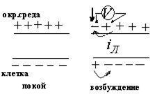В результате возбуждения между возбужденным и невозбужденным участками возникает разность потенциалов. Эта разность потенциалов создает электрический ток, называемый локальным током (от невозбужденного участка к возбужденному). Локальный ток оказывает на соседний невозбужденный участок такое же действие как и исходный возбудитель и увеличивает проница-емость мембраны для ионов