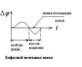 Этот процесс повторяется многократно и обусловливает распространение импульсов по всей длине клетки в обоих направлениях. Разность потенциалов между возбужденным и невозбужденным участками изменяется как