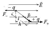 Т.о. в однородном электрическом поле на диполь действует момент сил, который стремится установить диполь вдоль силовых линий поля. Величина этого момента зависит как от