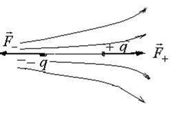 - напряженность поля в окрестности отрицательного заряда. По густоте силовых линий видим, что