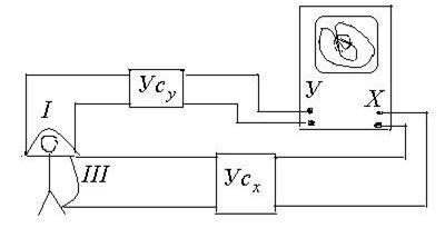 за цикл работы описывает сложную пространственную кривую. С помощью осциллографа, используя его усилители, можно наблюдать проекции этой пространственной кривой на фронтальную, горизонтальную и сагиттальную плоскости, совмещенные с телом обследуемого.