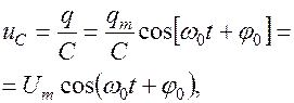 Напряжение на обкладках конденсатора изменяется по такому же закону, как и заряд,