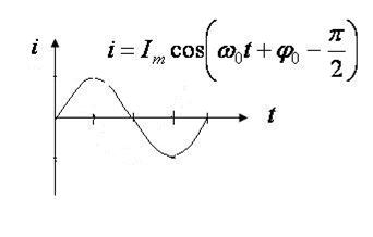 Находится в противофазе с зарядом и с напряжением на конденсаторе.