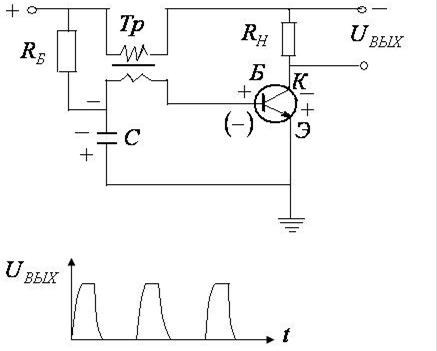 и источник тока. В результате разряда конденсатора база транзистора снова получает положительный потенциал через