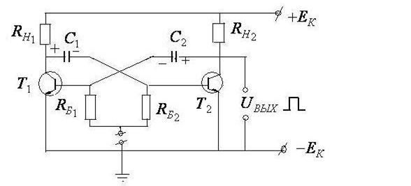 ). Транзисторы играют роль “включателей”. Симметричное их расположение в схеме обеспечивает поочередную зарядку конденсаторов: если открыт транзистор