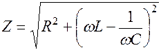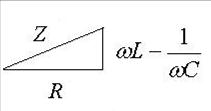 - импеданс ( общее сопротивление цепи) можно определить из треугольника сопротивлений:
