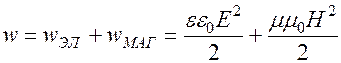 Полная энергия волны складывается из суммы электрической и магнитной энергий: