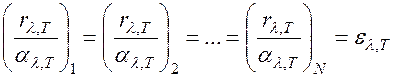 Изучая условия термодинамически равновесного излучения, Кирхгоф установил, что, т.к. термодинамическое состояние излучателей не меняется, то каждое тело излучает и поглощает одинаковую энергию. Спектр излучения каждого тела должен совпадать со спектром поглощения электромагнитного излучения, иначе термодинамическое равновесие нарушалось бы. В состоянии термодинамического равновесия у тел, обменивающихся энергией только путем излучения и поглощения, отношение спектральной плотности энергетической светимости к коэффициенту поглощения является постоянной величиной, независящей от природы тела, и для всех тел выражается одной и той же функцией от длины волны