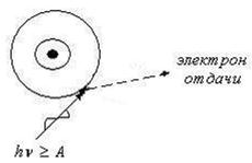 Вылетевший электрон называется электроном отдачи. Это явление называется фотоэффектом и описывается уравнением Эйнштейна