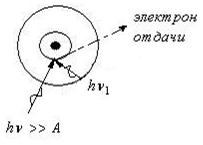 Это явление наблюдается, если на атом падает фотон, энергия которого значи-тельно больше энергии ионизации (работы выхода)