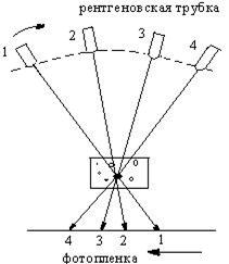Рентгеновская томография является достаточно новым методом и позволяет послойно исследовать орган. Она заключается в том, что рентгеновская трубка и фотопленка перемещаются в противофазах. При исследовании какого-либо органа в нем выбирается одна какая-то точка (точка качания) Эту точку фотографируют с разных позиций. И тогда те органы, которые затемняли изучаемую точку при рентгенографии, становятся общим фоном, на котором выделяется исследуемая точка. При исследовании какого-либо органа, изменяя положение точки качания, т.е. последовательно исследуя одну точку органа за другой, послойно, можно получить послойное изображение исследуемого органа. Такая последовательная запись органа называется томографией.